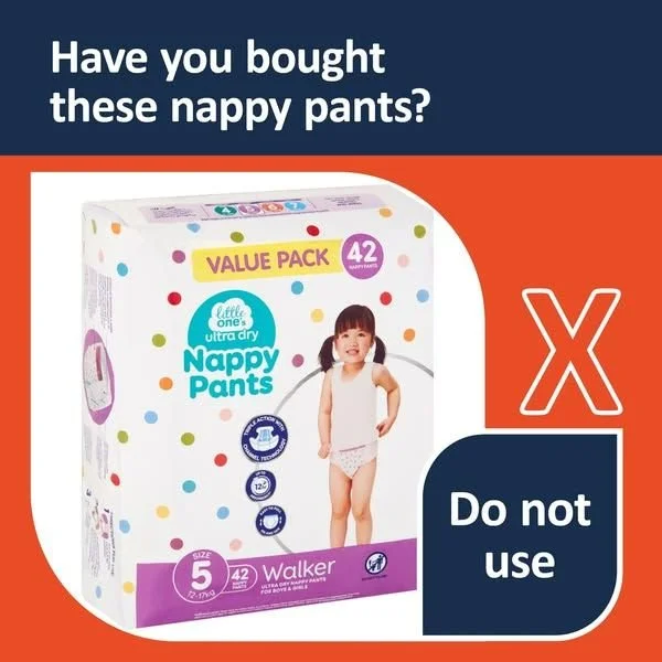 Please do not donate Little One’s Ultra Dry Nappy Pants (Walker Size 5, 42 pack) at any of our collection boxes, Australia-wide.